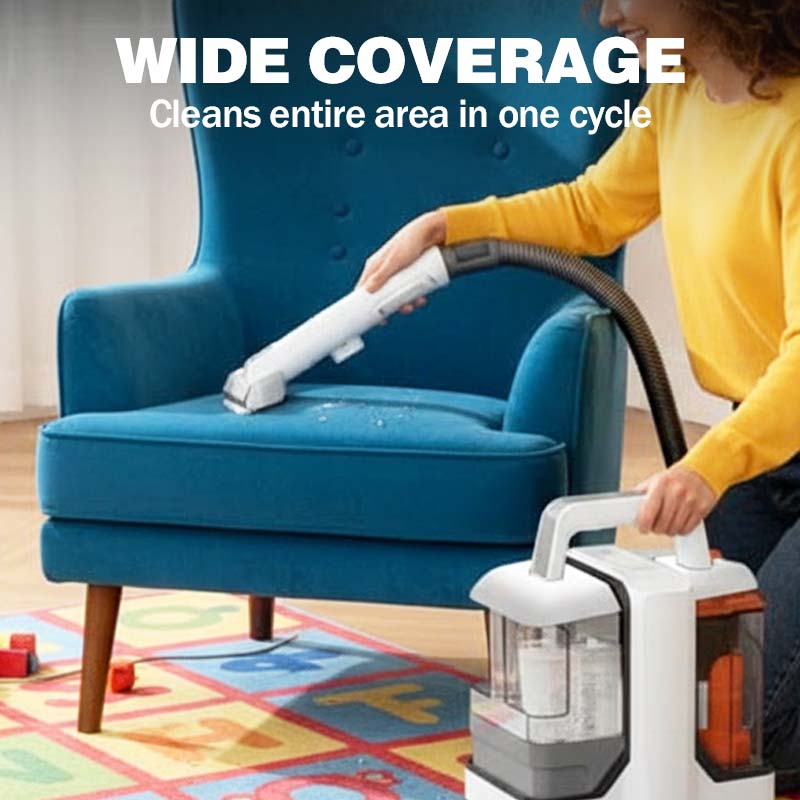 WIDE COVERAGE CLEANING: A single cleaning cycle covers wide areas efficiently, saving time and energy. It allows complete cleaning of fabrics, ensuring consistent results throughout every surface and corner.