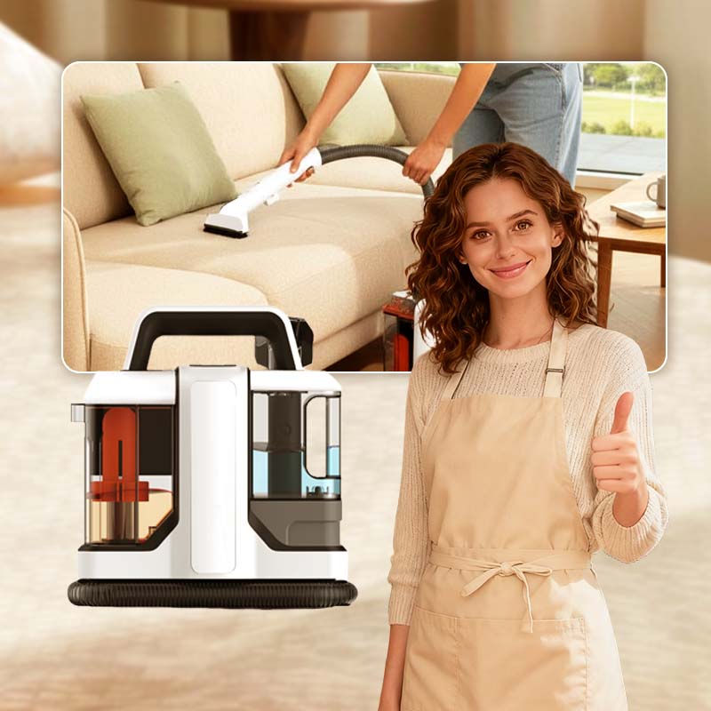 EFFORTLESS STAIN REMOVAL: Designed for convenience, this machine provides powerful cleaning performance without complicated operation. Simply fill, switch on, and achieve spotless results on sofas, carpets, and upholstery.