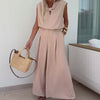 CHIC 2-PIECE SET: This matching outfit includes a sleeveless V-neck top and wide-leg pants, giving you a complete, effortless look that’s stylish from head to toe—no extra styling needed.