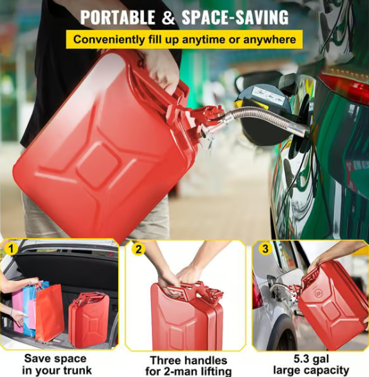 ⛽️Smooth pouring: The spout of the metal can is equipped with a mesh filter in the spout to prevent dirt/debris from entering the fuel system.
