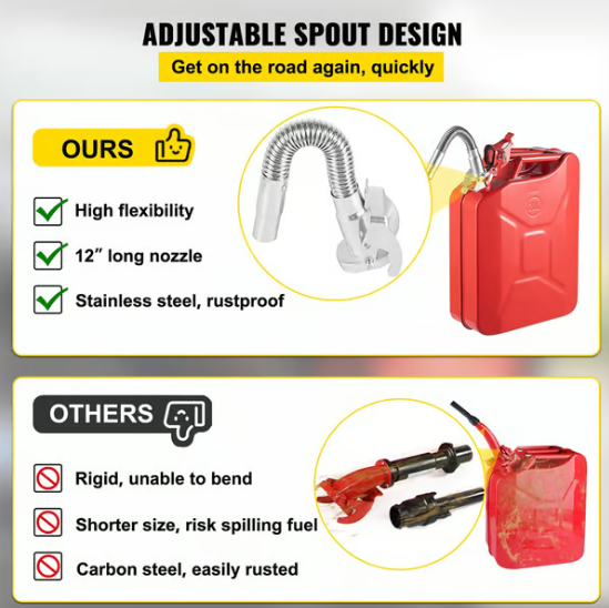 📌Dimension: The spout length is approx. 29.5 cm/11.61 inch. Compatible for US standard 5L/10L/20L jerrycans.