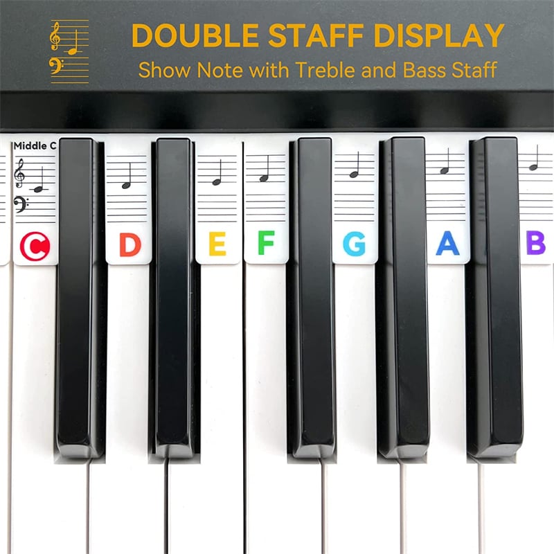 🎹The piano's removable music labels are made of silicone and connect the labels in a set, so you don't have to attach them to the keys like piano labels. Easy to install, easy to remove without leaving any residue, keeps the keyboard clean and tidy.