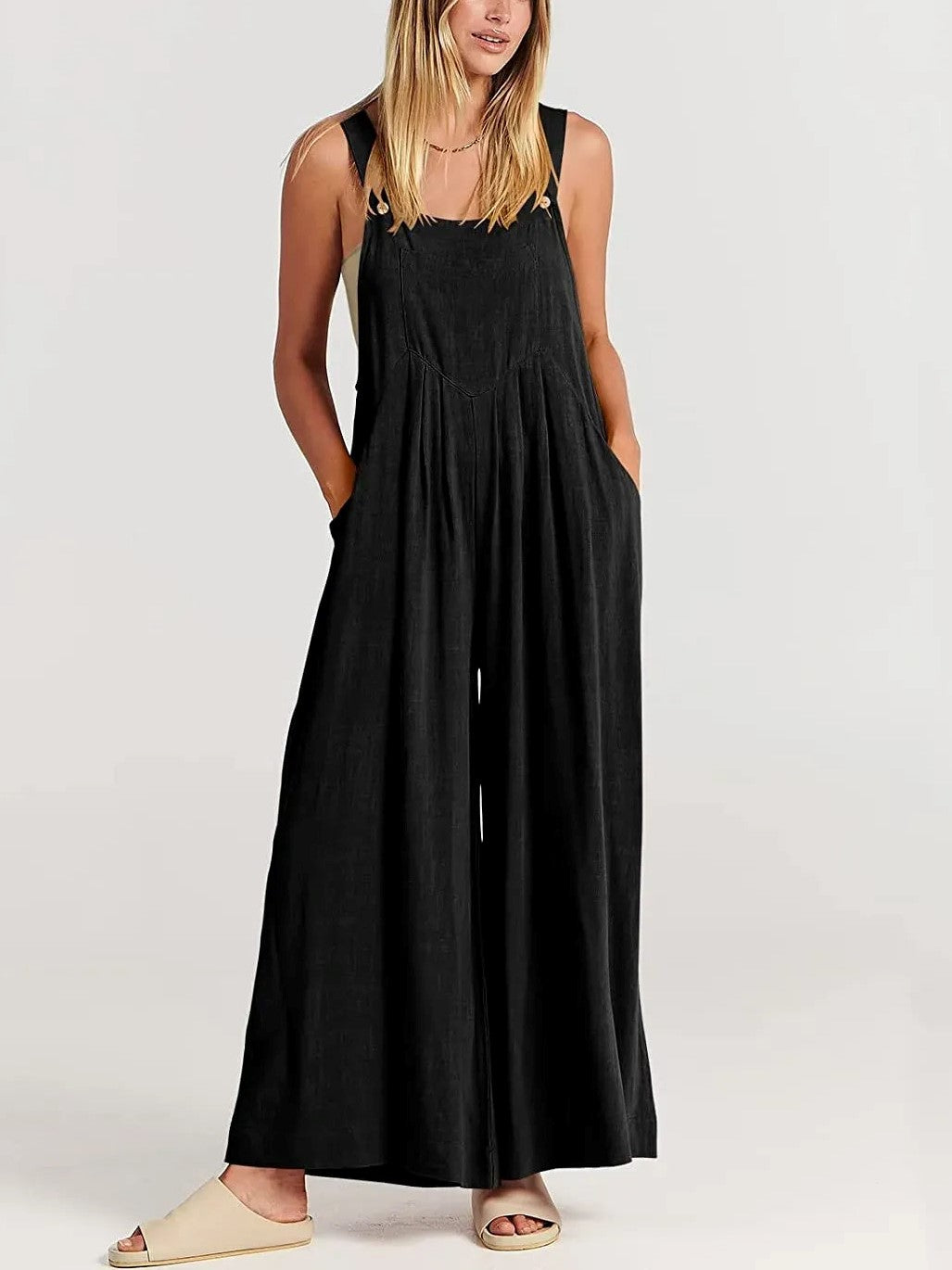 This overalls jumpsuit is designed withĀ adjustable shoulder straps,Ā button detailing,Ā sleeveless style,Ā square neckline,Ā pockets,Ā wide leg pants,Ā is a loose casual fit.