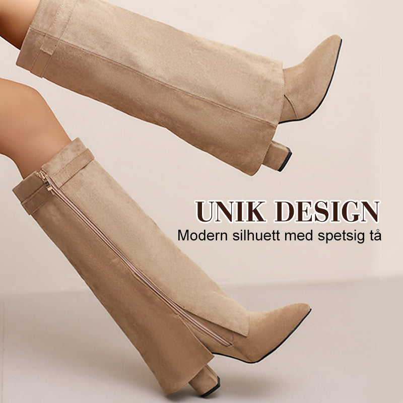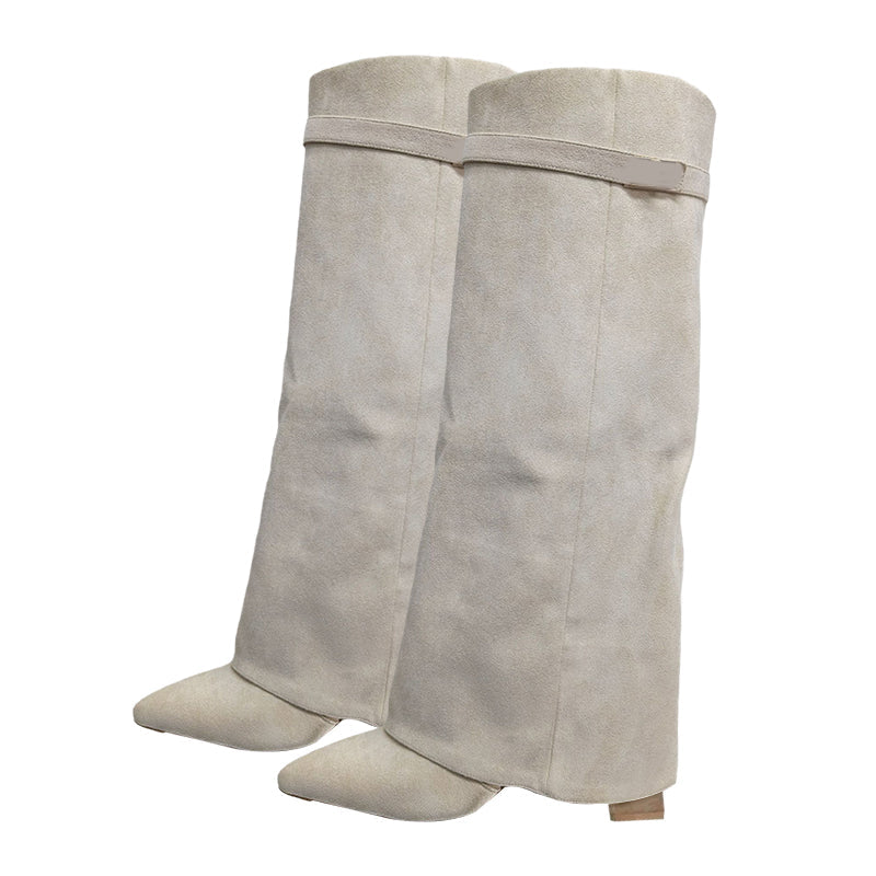 UNIQUE FASHION DESIGN: These knee-high boots feature a distinctive silhouette that stands out effortlessly. The pointed toe and thoughtful details highlight modern fashion trends, making them a versatile statement piece in any wardrobe.