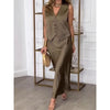 V-NECK SLEEVELESS DESIGN – A TOUCH OF TIMELESS CHARM: The top features a flattering V-neckline and sleeveless silhouette, ideal for highlighting the collarbone while offering breathability during warm days. The button closure adds visual interest and functionality, making dressing up simple yet sophisticated. This design elevates your presence whether you're attending a garden party or a semi-formal event.