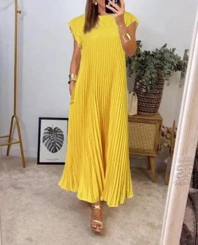 🔥HOT SALE🔥Sleeveless pleated simple solid color dress