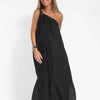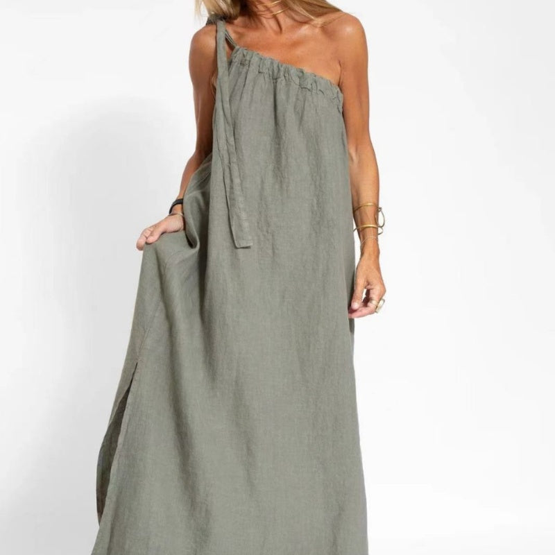 Package Included:1*Solid Color Slant Shoulder Side Split Dress