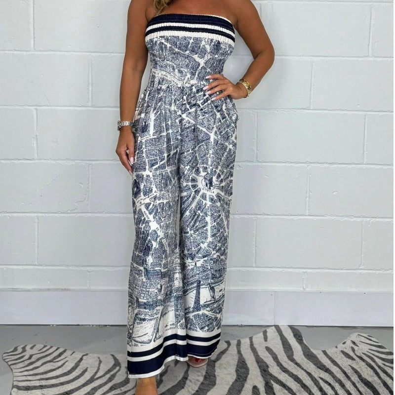 ❤️🔥Strapless Printed Pleated Jumpsuit