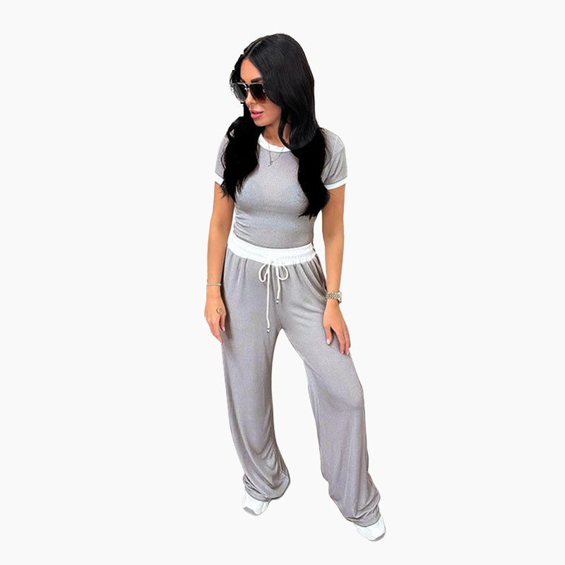 Women’s Ribbed Lounge Set with Crop Top & Wide-Leg Pants