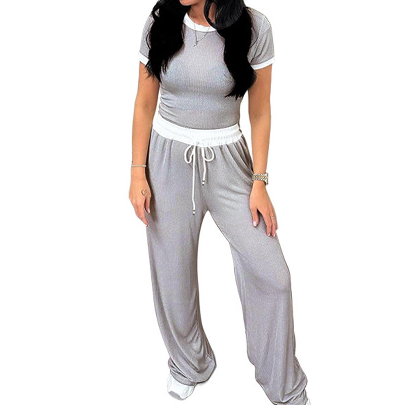 Package Includes:1*Women’s Ribbed Lounge Set with Crop Top & Wide-Leg Pants