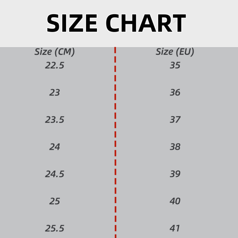 All sizes are reflected in centimeters, referring to foot length, not the shoe size. This allows you to measure your foot and select the size that best fits you.