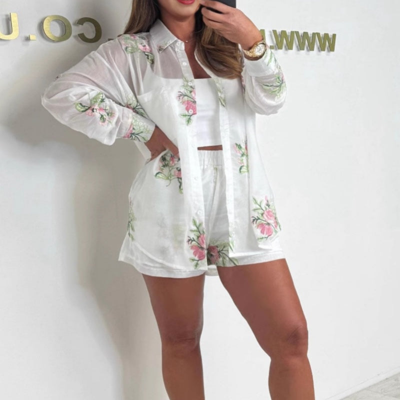 Women's Lightweight Breathable Embroidered Shirt Shorts Set