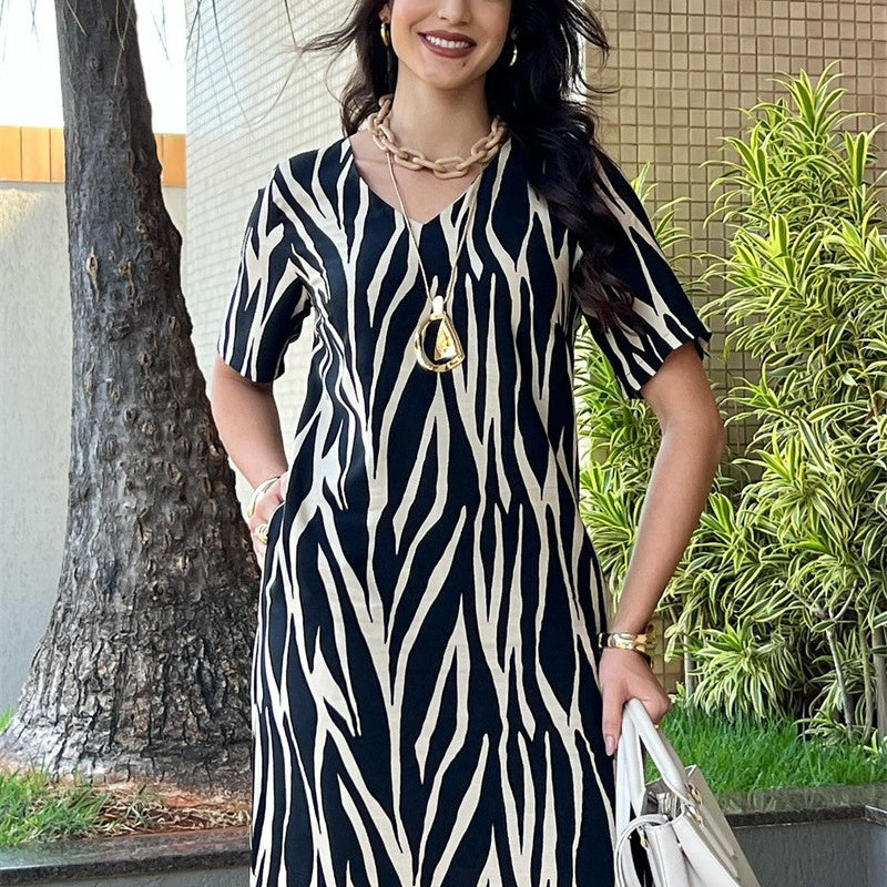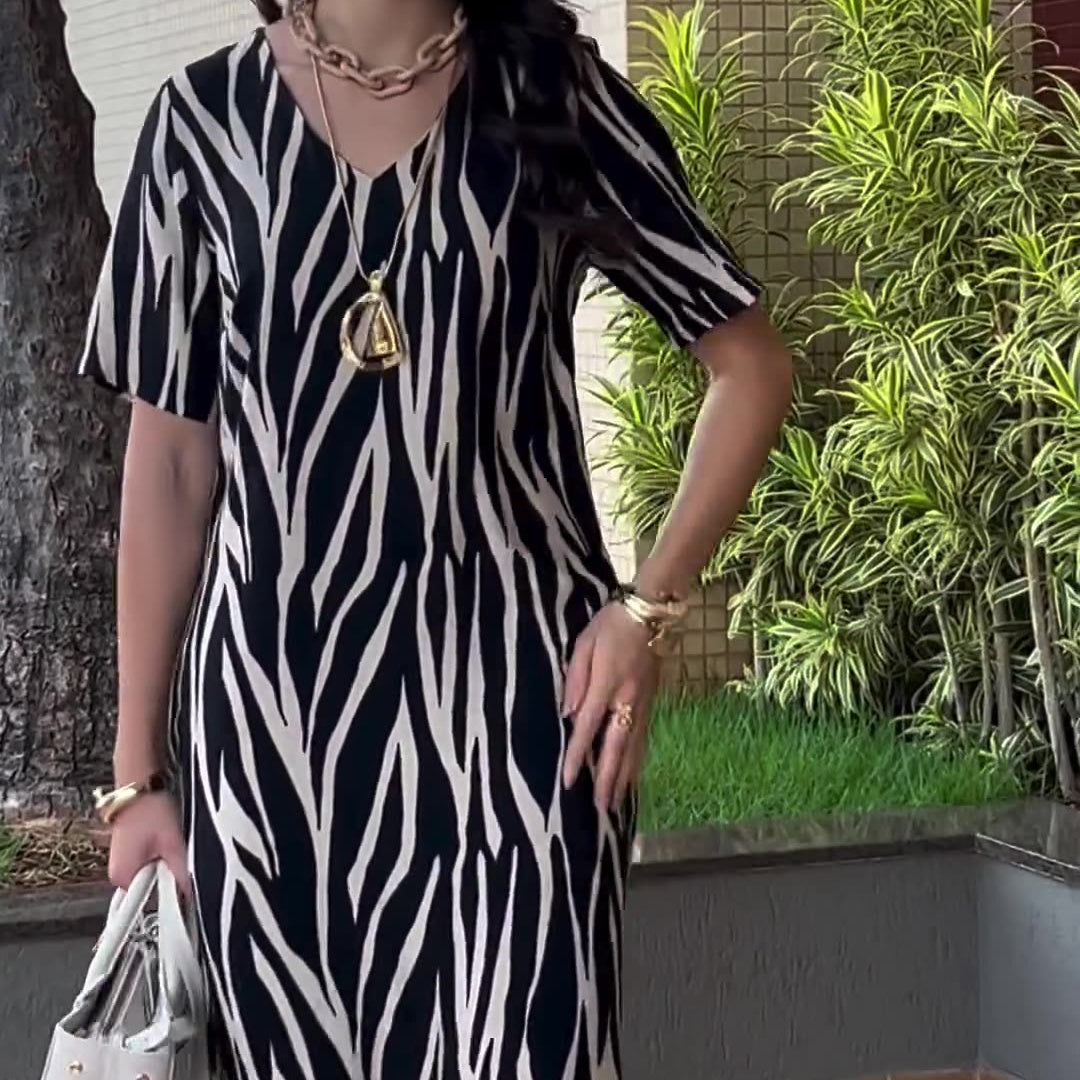 CHIC V-NECK: The trendy V-neck design enhances your neckline and provides a flattering silhouette. This dress is both elegant and comfortable, offering a trendy yet timeless look.