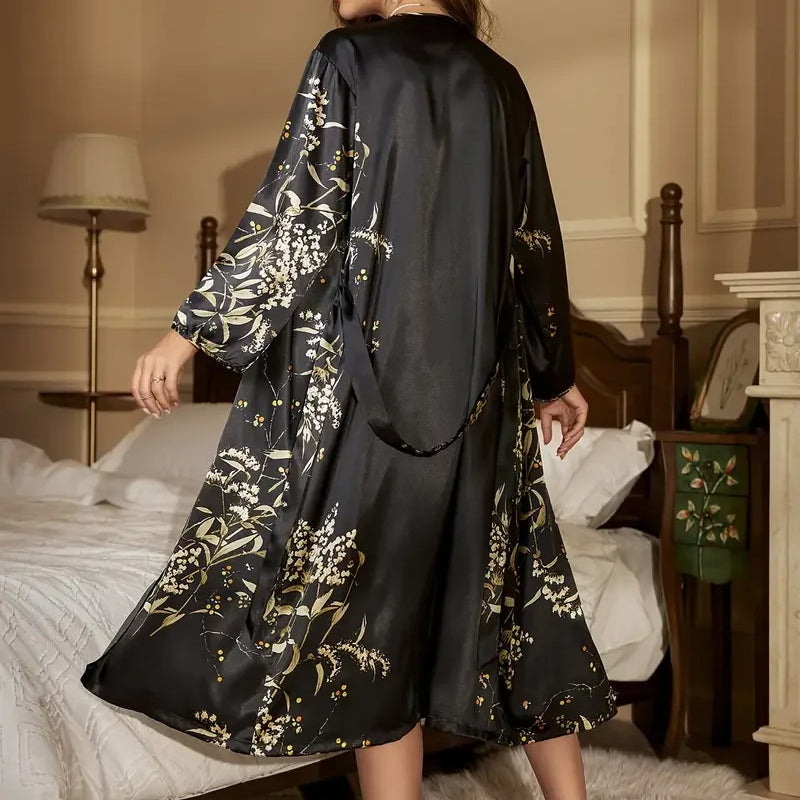 ELEGANT FLORAL PATTERN DESIGN - The charming floral pattern on the dress adds a romantic and feminine touch, perfect for relaxing at home or spending a cozy night in. Soft colors and sophisticated design enhance your pajama style.