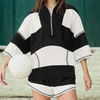 Package Includes: 1 * Women’s Striped Half Zip Tops & Shorts Two-Piece Set