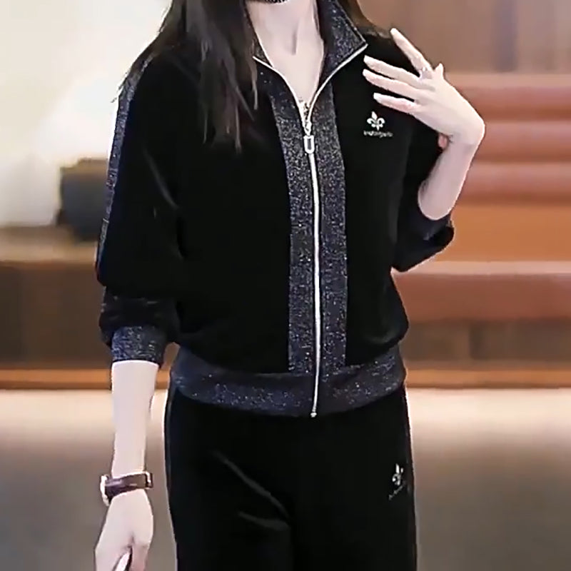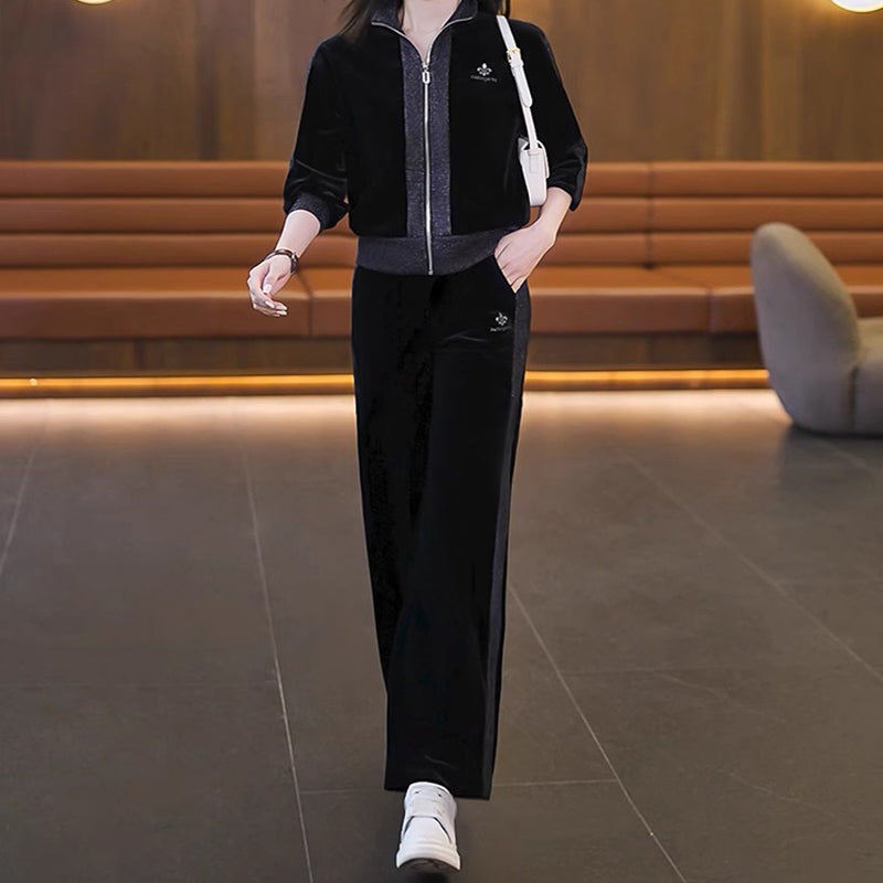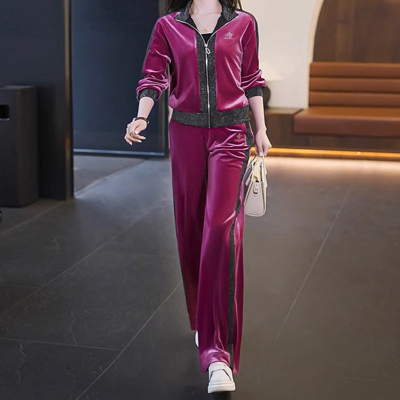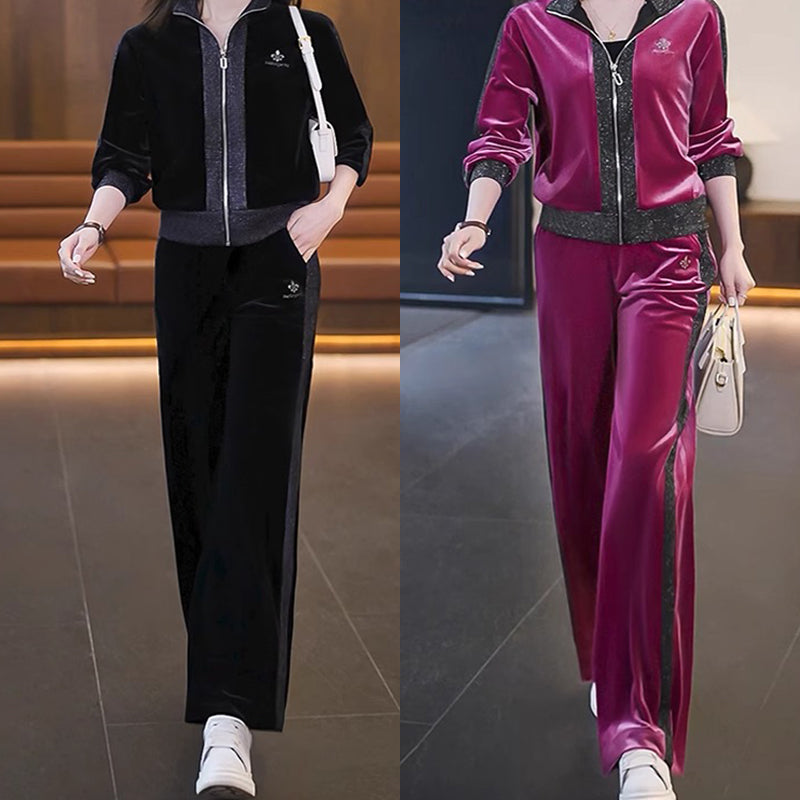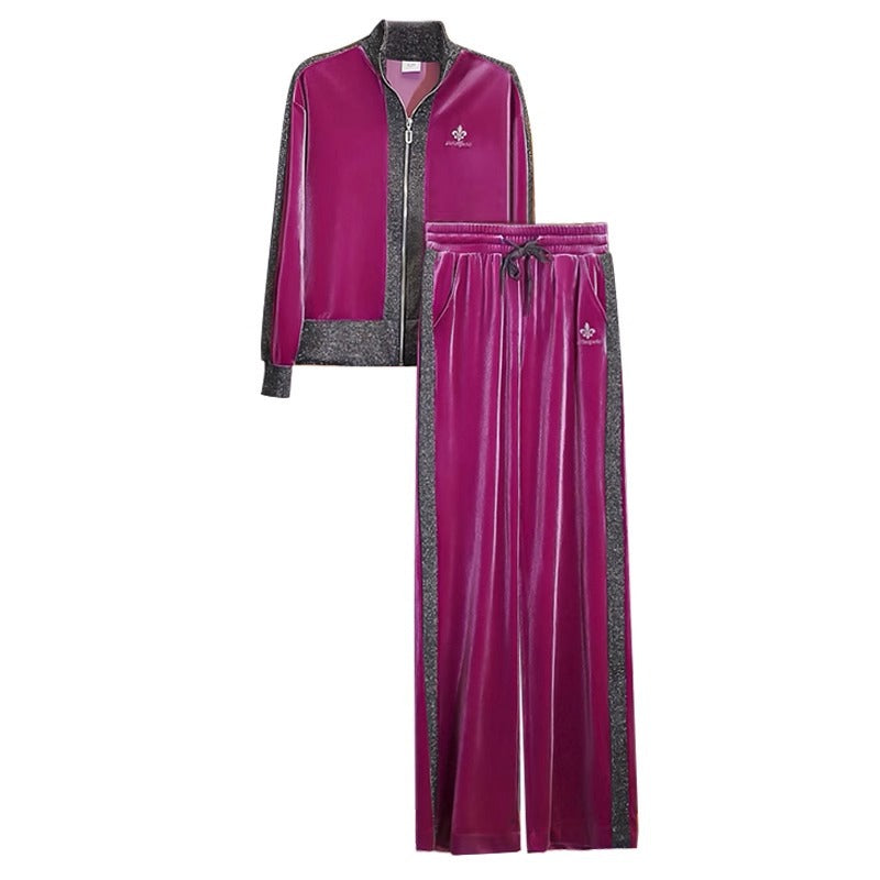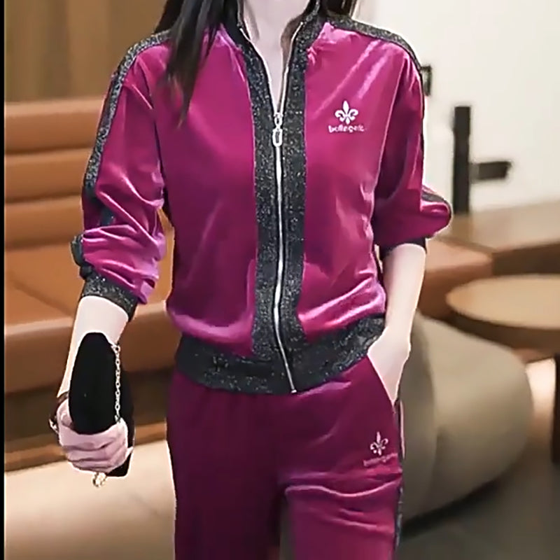 Package includes: 1 * Women's Velvet-Like Contrast Color 2-PieceTracksuit
